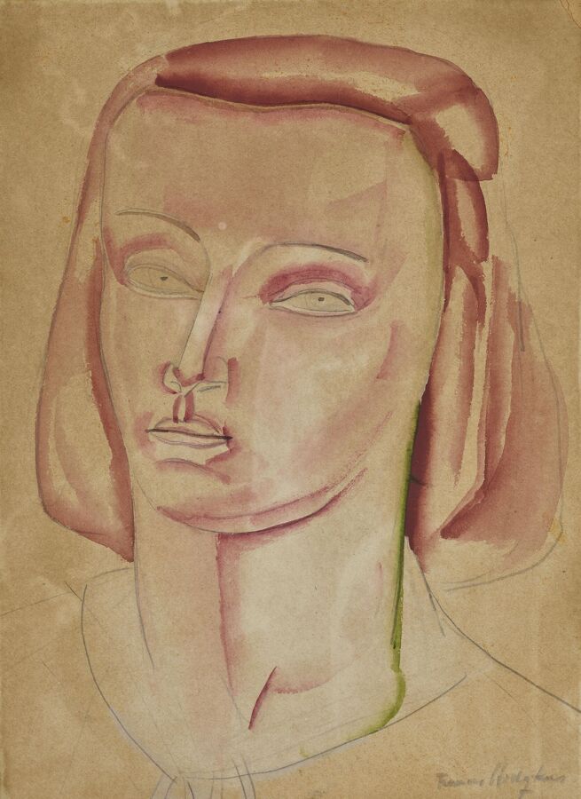In the immediate aftermath of the First World War, Frances Hodgkins’s style would undergo a radical change that would establish her in the following decade as one of the key figures in British modernism. Born in New Zealand, her early work reflects the more Edwardian art of her contemporaries and it was through working with Sir Cedric Morris during the War, before later travelling to the France, that would help introduce this new approach to painting. This strong portrait is typical of the more abstracted, simplified style associated with her modernist phase. In 1929 she joined the highly exclusive Seven and Five Society working alongside artists such as Henry Moore, Barbara Hepworth and Ben Nicholson.