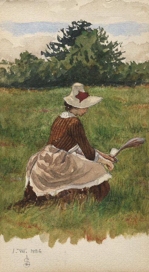 A Woman Gathering Beach Grass