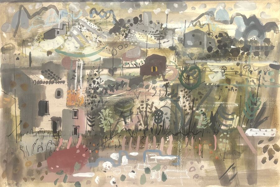 Watercolour with gouache over pen and ink, 35.5 by 53 cm (14 by 20 ¾ ins)