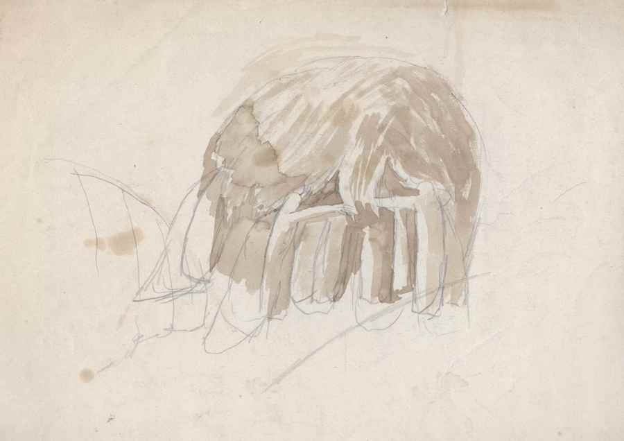A study for figures at the foot of the house to the centre of Spencer's panel painting of 1920 The paralytic being let into the top of the house from his bed.