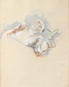 The unconventional nature of much of Platt’s subject matter took him to scenes that included the washing of fish, mending nets, boiling crabs and the filling of a shell oil tanker. Many of these subjects also appear in his fine lithographs from the 1950s. Like Reginald Brill, the artist whose work is most closely comparable to Platt at this date, sometimes he chose the most unlikely of subjects. One such example is this funeral scene, a wonderful snapshot of one of life’s most important events, focussing on detail that ranges from the seemingly banal to the profound, throughout never distracting from the essential poignancy of the scene itself.